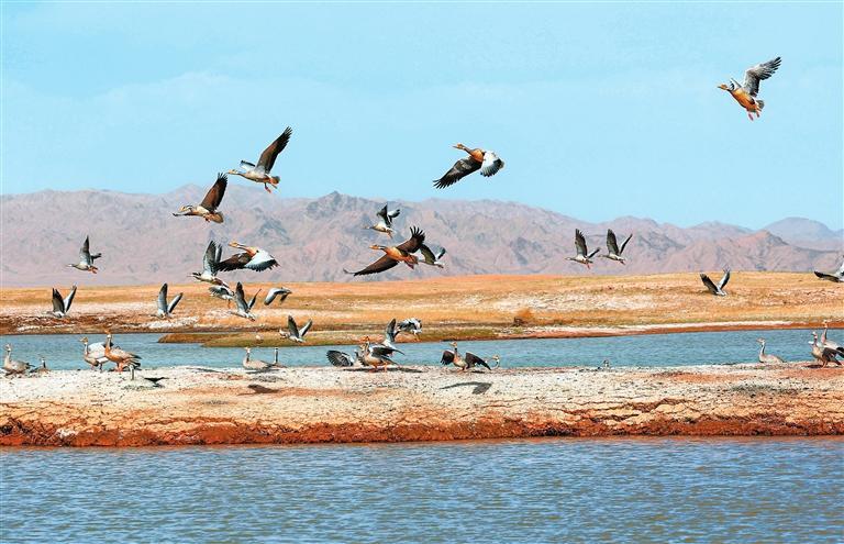 近年來(lái),經(jīng)過(guò)當(dāng)?shù)赜嘘P(guān)部門和甘肅鹽池灣國(guó)家級(jí)自然保護(hù)區(qū)的有效治理和保護(hù),野生動(dòng)物種群逐漸增多。每年遷徙至此繁衍生息的鳥(niǎo)類種群和數(shù)量不斷增加,時(shí)常上演萬(wàn)鳥(niǎo)翔集的壯觀場(chǎng)景,勾勒出一幅和諧壯美的大自然畫(huà)卷。