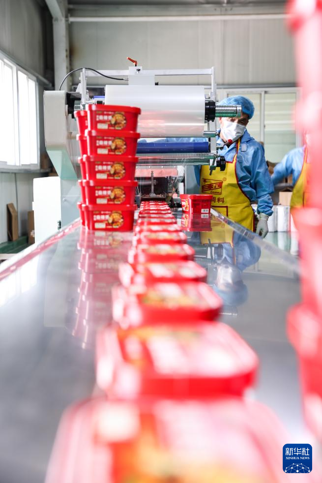 7月22日,工作人員在甘肅天水市一家麻辣燙企業(yè)車間內(nèi)包裝產(chǎn)品。新華社記者 呂帥 攝