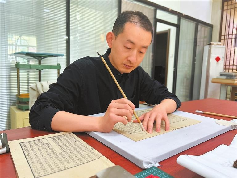 “我們這個工作更重視實操能力,一般新手都要先從觀摩開始,最先上手的工作普遍是補蟲洞。”杜泓瑞說,“古籍修復實際上是一門交叉學科,從古漢語到繪畫美術(shù),再到傳統(tǒng)古籍裝幀出版,需要學習的課程和掌握的知識涉及許多領域,而隨著年輕人的加入,會將很多新式手法和理論運用到修復中,但也需要年輕人沉下心不斷對古籍修復理論化、課程化進行深入探索。”