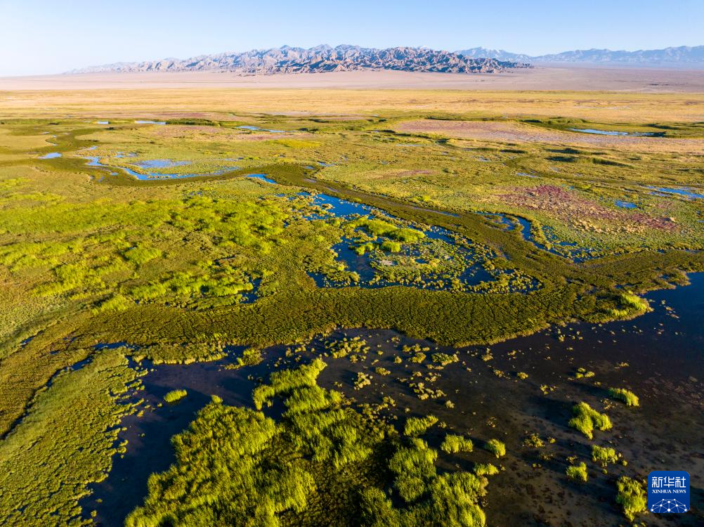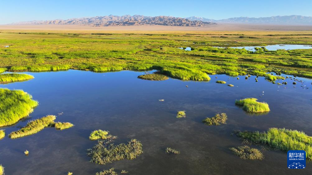 7月31日拍攝的大蘇干湖濕地景色(無人機照片)。新華社發(fā)(高宏善 攝)
