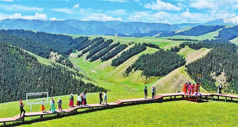游客在肅南縣康樂草原領(lǐng)略祁連風(fēng)光。 新甘肅·甘肅日報通訊員 王將