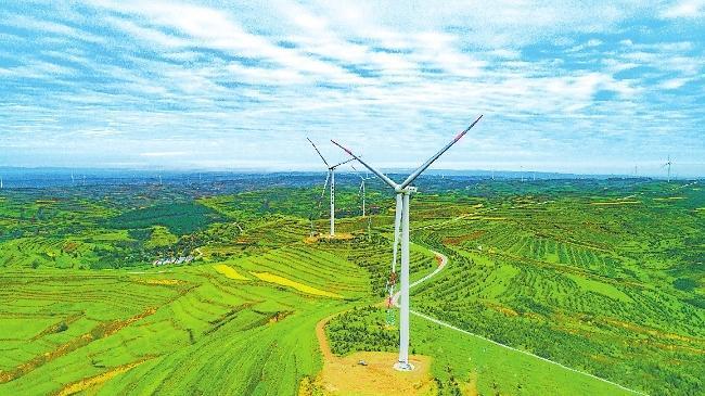 來到山腳下,眺望四周,頓覺牛營大山的巍峨。碧綠的牛營大山儼然是一幅迷人的立體式畫卷。藍(lán)天、白云、松柏、綠茵、花草、溪流……如果展開這幅畫卷,那簡直就是視覺的盛宴。連綿的群山上筆直挺立的一座座白色的風(fēng)車不停飛轉(zhuǎn),從藍(lán)天白云間灑下來的陽光,映照在潔白高聳的風(fēng)機(jī)組上,像是涂了胭脂的嬌媚臉蛋,亭亭玉立的軀干也披上了金色陽光做成的長裙,那腰肢顯得格外柔美。