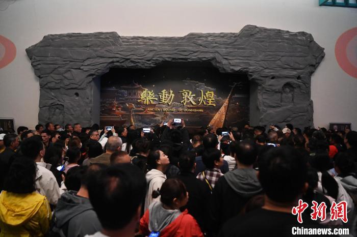 圖為游客觀看大型洞窟式沉浸體驗劇《樂動敦煌》。九美旦增 攝