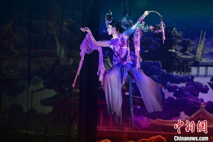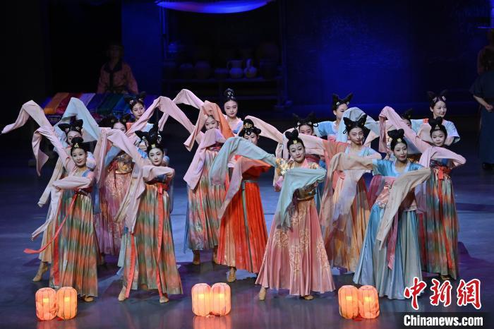 9月5日晚,甘肅敦煌旅游熱度不減,眾多游客觀看大型洞窟式沉浸體驗劇《樂動敦煌》。該劇溯源敦煌文化,借助對莫高窟壁畫、藏經(jīng)洞古籍進行解讀,用全息投影、3D威亞等高科技手段,以全沉浸式的呈現(xiàn)方式,演繹西域少年追尋藝術(shù)的傳奇故事。劇中運用了琵琶、排簫、阮等民族樂器及仿制敦煌古樂器的音色,通過胡旋舞、腰鼓舞、琵琶舞等典型舞蹈,展現(xiàn)了敦煌壁畫中的樂舞盛景,全面展現(xiàn)敦煌傳承千年的樂舞文化魅力。九美旦增 攝