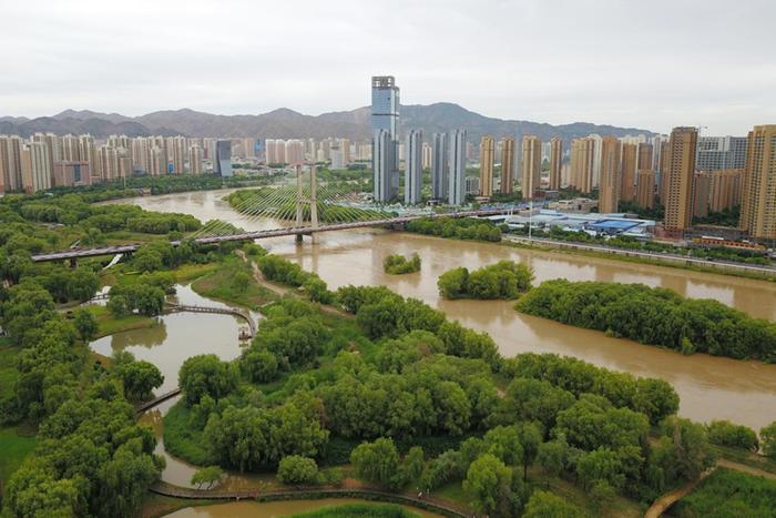 黃河蘭州段及兩岸景象。新華社記者 范培珅 攝