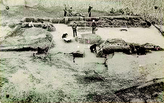 秦安大地灣遺址是1958年發(fā)現(xiàn)的,當(dāng)時正值全國文物大普查,隨即被列為省級文物保護(hù)單位。1978年開始發(fā)掘,總面積110萬平方米,現(xiàn)揭露面積13700平方米,出土房址238座、灰坑357個,墓葬79座、窯38座、灶臺106座,各種骨、石、蚌、陶器、裝飾器和生活器物共計8034件。特別是房屋建筑遺址,不僅規(guī)模宏偉,而且形制復(fù)雜。在發(fā)掘中就被公布為全國重點(diǎn)文物保護(hù)單位。