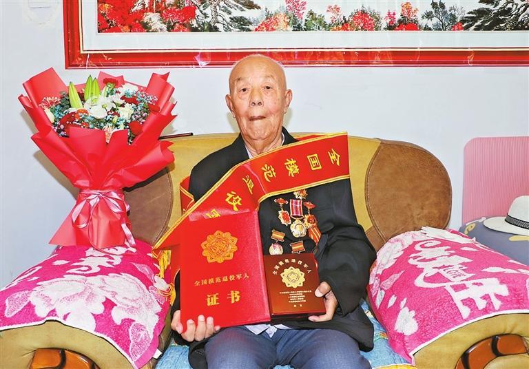 當(dāng)天,平川區(qū)武裝部、退役軍人事務(wù)局的工作人員為胡占學(xué)帶來了“全國(guó)模范退役軍人”榮譽(yù)證書、勛章和綬帶,并為老人佩戴了勛章。