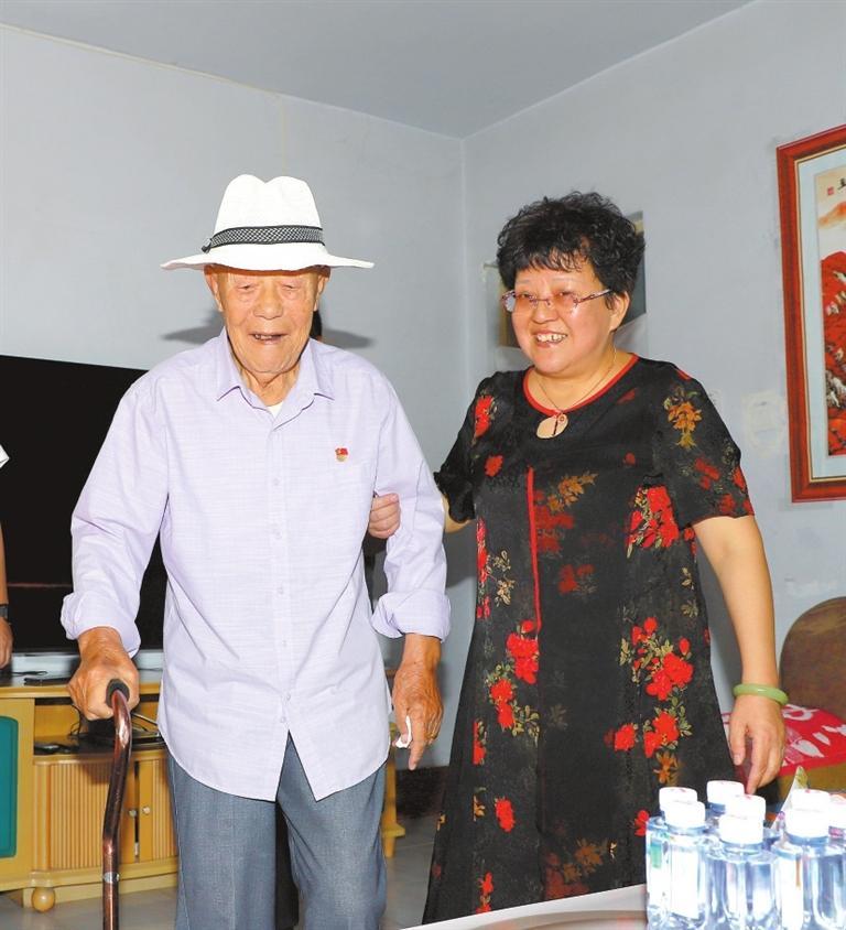 見到94歲的胡占學(xué)時(shí),他正在小女兒胡英敏的攙扶下在屋里行走,盡管步履蹣跚,但依舊神采奕奕。