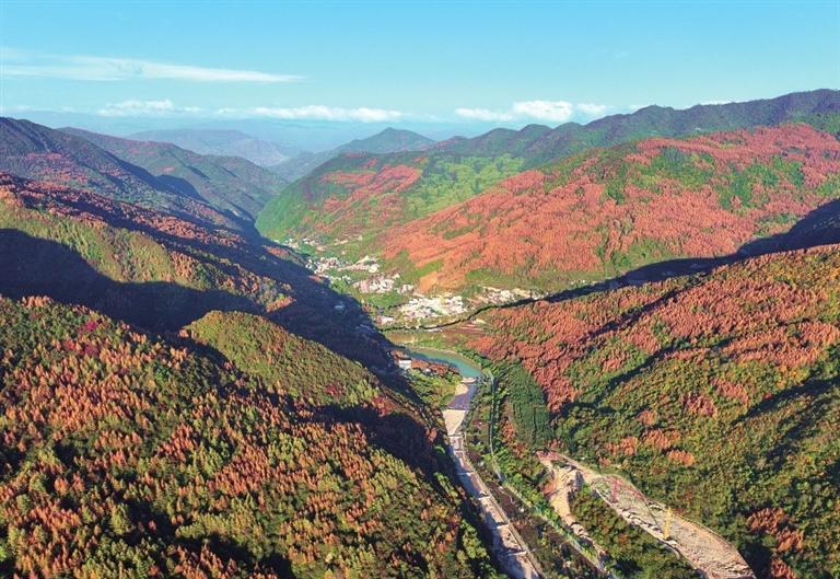 金秋時(shí)節(jié),位于宕昌縣的官鵝溝國家森林公園秋色盡染,斑斕如畫。