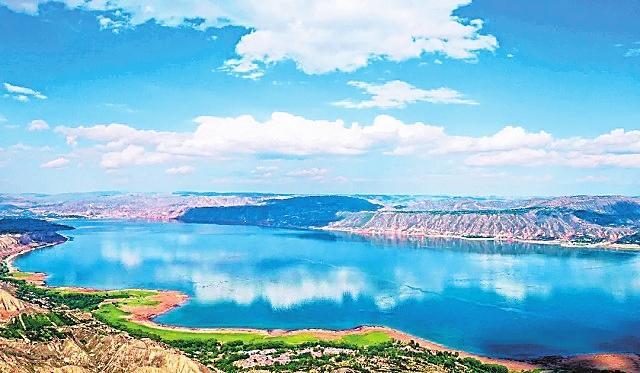 炳靈湖 雄偉的劉家峽大壩阻斷黃河,在永靖境內(nèi)聚成了一座高峽平湖。因這座湖毗鄰炳靈寺石窟和雄奇險秀的炳靈石林,故稱其為炳靈湖。整個湖水,在夏秋季呈綠色,就像一塊翡翠鑲嵌在群山之中,散發(fā)著耀眼的光芒,夏秋呈翡翠色,冬春呈藍色,由于水質清澈,群山倒映水中,水天一色,加之湖面廣闊無垠,看上去平靜如海。但每當劉家峽水庫泄洪的時候,磅礴的氣勢猶如蛟龍出水,翻江倒海,氣沖云天。