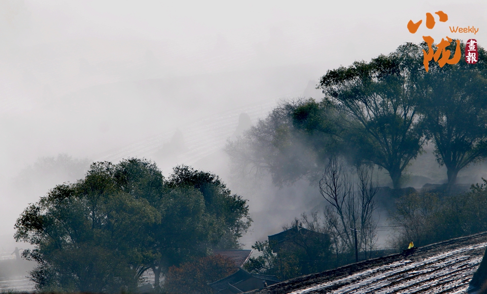 霧氣彌漫,大樹(shù)如墨,好一幅中國(guó)山水意境圖。