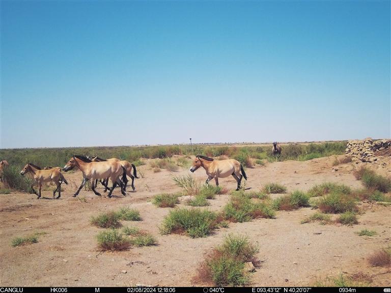 近日,甘肅敦煌西湖國家級(jí)自然保護(hù)區(qū)工作人員在保護(hù)區(qū)監(jiān)測數(shù)據(jù)中發(fā)現(xiàn)了令人驚嘆的一幕:普氏野馬與野駱駝同框。