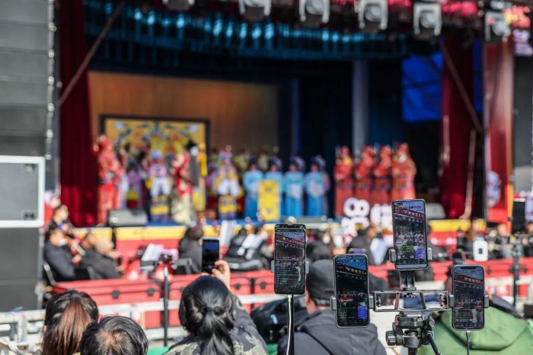 生旦凈末丑,粉墨演春秋。一出好戲如同一座情感的橋梁,將親情、友情和鄉(xiāng)情緊密相連。1月3日的開(kāi)場(chǎng)演出定于下午1點(diǎn)半,但是上午11點(diǎn)就有大批的戲迷從不同的地方趕來(lái),闊大的綠地廣場(chǎng)變得擁擠,一時(shí)間人聲鼎沸,熱鬧非凡。演出期間,鐵粉們堅(jiān)守舞臺(tái)前,點(diǎn)戲評(píng)戲津津有味,頭頭是道。