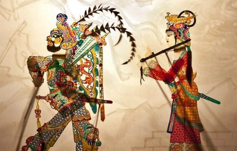 皮影戲,即由皮影藝人在幕影后掌握操縱用獸皮或紙版雕刻的半透光材料制作的人、物等彩色形象,使其做出種種動(dòng)作,再借燈光將動(dòng)作者的剪影(影偶形象)打上幕影,并配合一定言語(yǔ)、說(shuō)唱和背景音樂(lè),從而表演戲劇故事的一種藝術(shù)形式。