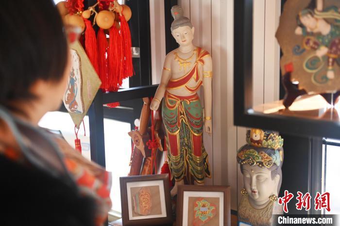 2月8日,甘肅省蘭州市城關(guān)區(qū)“非遺年貨購物月”活動(dòng)現(xiàn)場,游人挑選敦煌系列文創(chuàng)產(chǎn)品。中新社記者 李亞龍 攝