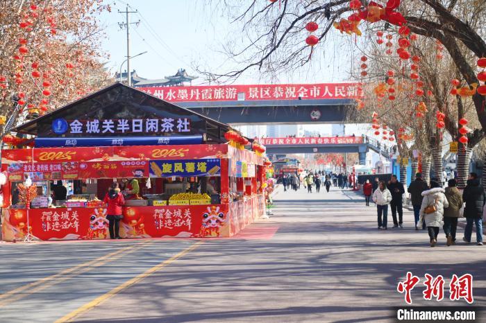 2月8日,甘肅省蘭州市城關(guān)區(qū)“非遺年貨購物月”活動(dòng)現(xiàn)場,游人逛街。據(jù)悉,該活動(dòng)是中國文化和旅游部非遺司組織開展的2025年“非遺好物 國潮煥新——四季非遺購物月”活動(dòng)一季度的主題活動(dòng)。通過豐富多樣的非遺促消費(fèi)活動(dòng),發(fā)揮非遺在弘揚(yáng)中華優(yōu)秀傳統(tǒng)文化、培育國貨“潮品”的積極作用?!≈行律缬浾?nbsp;李亞龍 攝