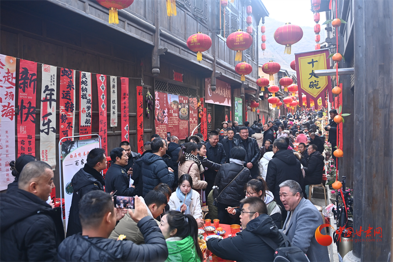 白馬民俗長街宴,美食沿著古巷分布,桌椅板凳綿延幾百米,家家戶戶帶來特色美食,一起與游客分享,帶來團(tuán)圓的問候和特有的民俗體驗(yàn),臘肉、臘排都是農(nóng)家食材,十大碗更是當(dāng)?shù)孛朗程厣?/p>