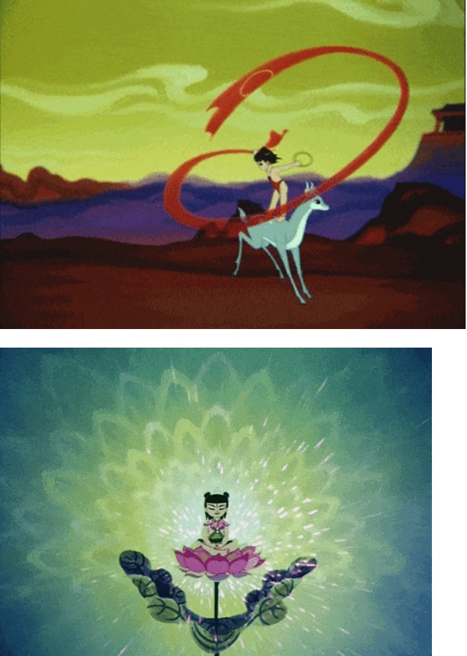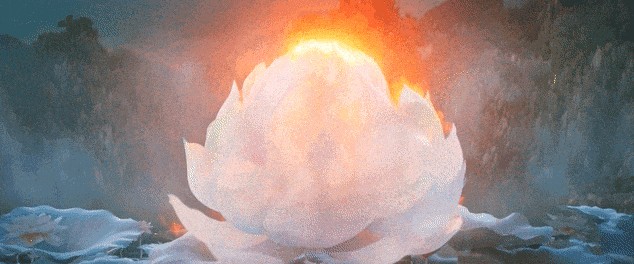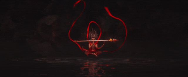 當(dāng)蓮花綻放,哪吒從花瓣中走出,三頭六臂,手持火尖槍,腳踏風(fēng)火輪,那一刻,傳說中的少年英雄涅槃了。