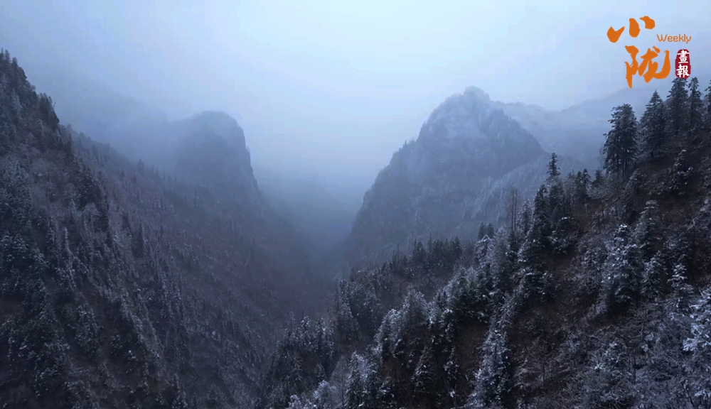 遠峰近林,銀裝素裹,似是素手描繪的水墨畫卷。