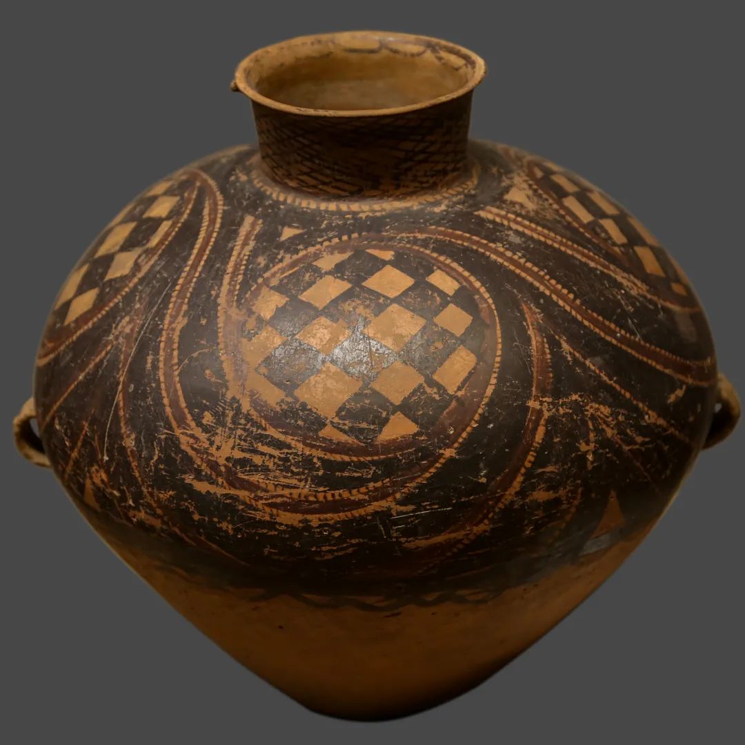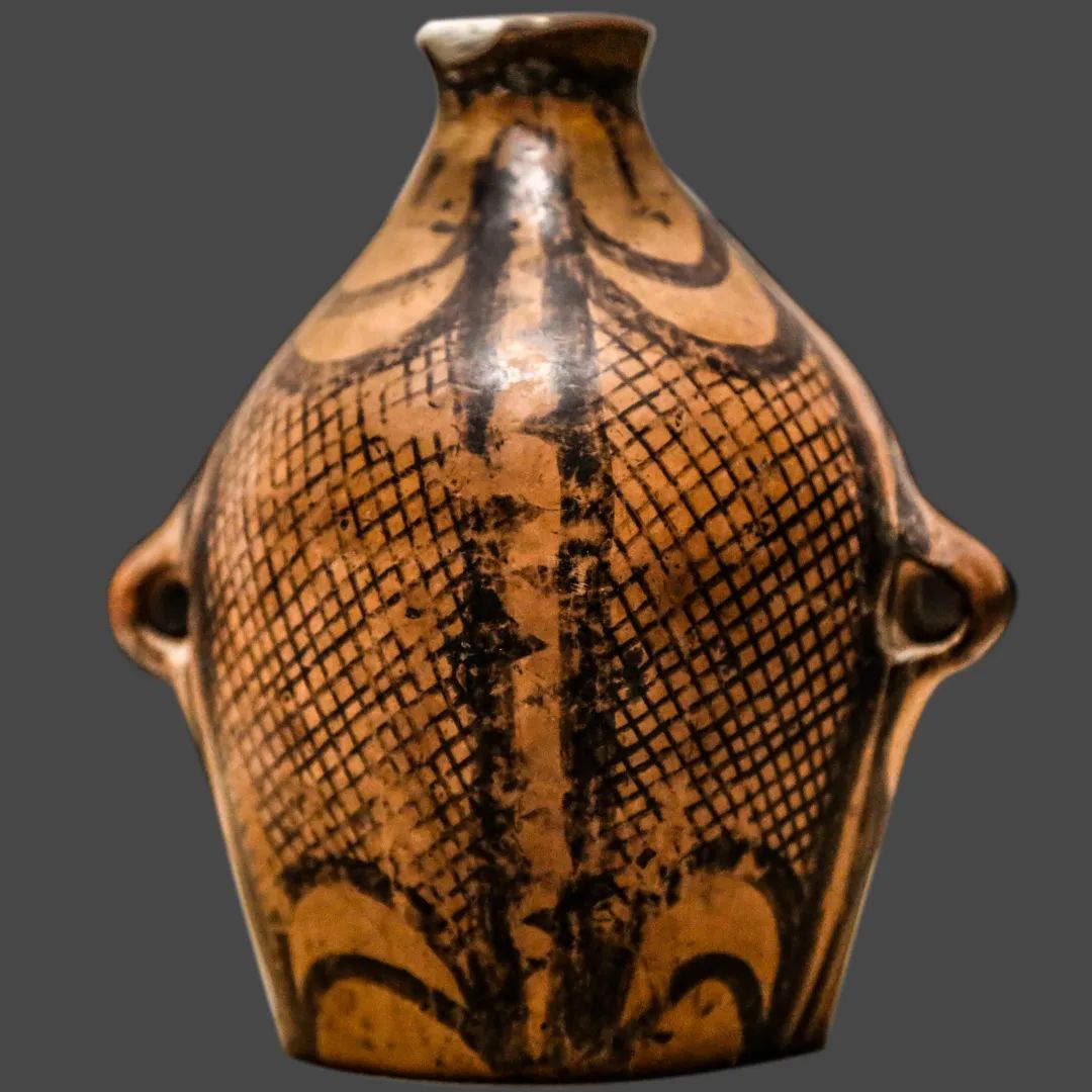 紋飾:以黑彩為主,常見(jiàn)漩渦紋、水波紋、平行線紋、網(wǎng)格紋、同心圓紋等,部分陶器上出現(xiàn)早期人像紋或舞蹈紋。