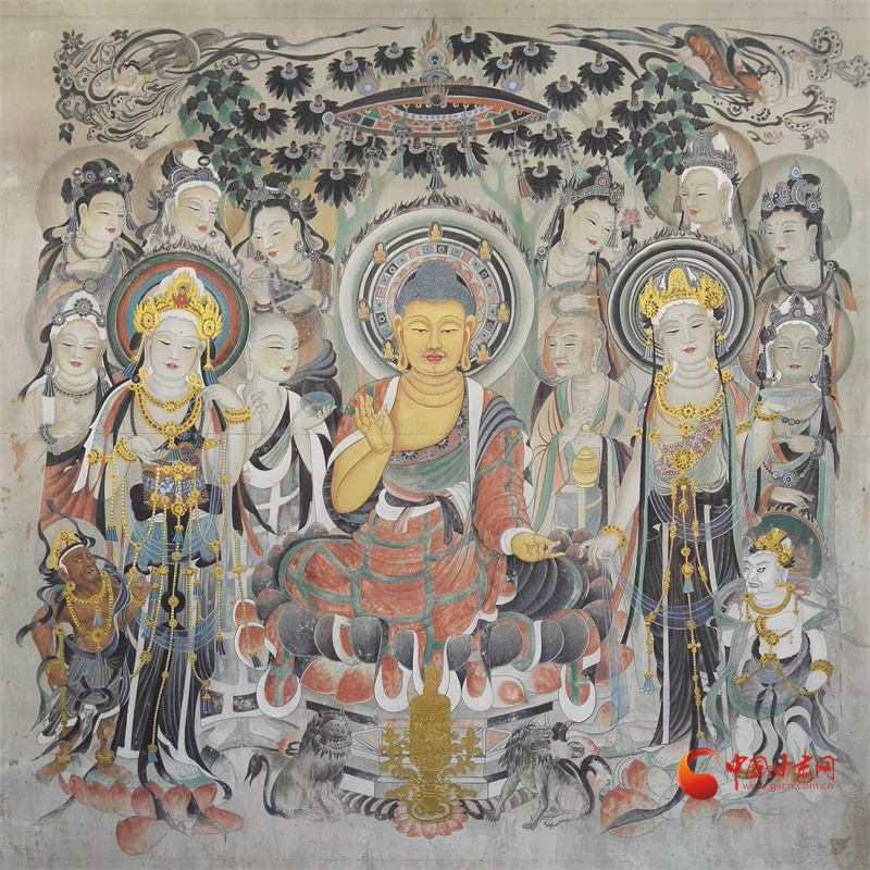 所謂“薄肉雕”就是壁畫與雕塑結合,在佛像的裝飾部位和衣衫部位都是壁畫描繪,在佛像裸露的身體部位則用雕塑來塑造立體感。
