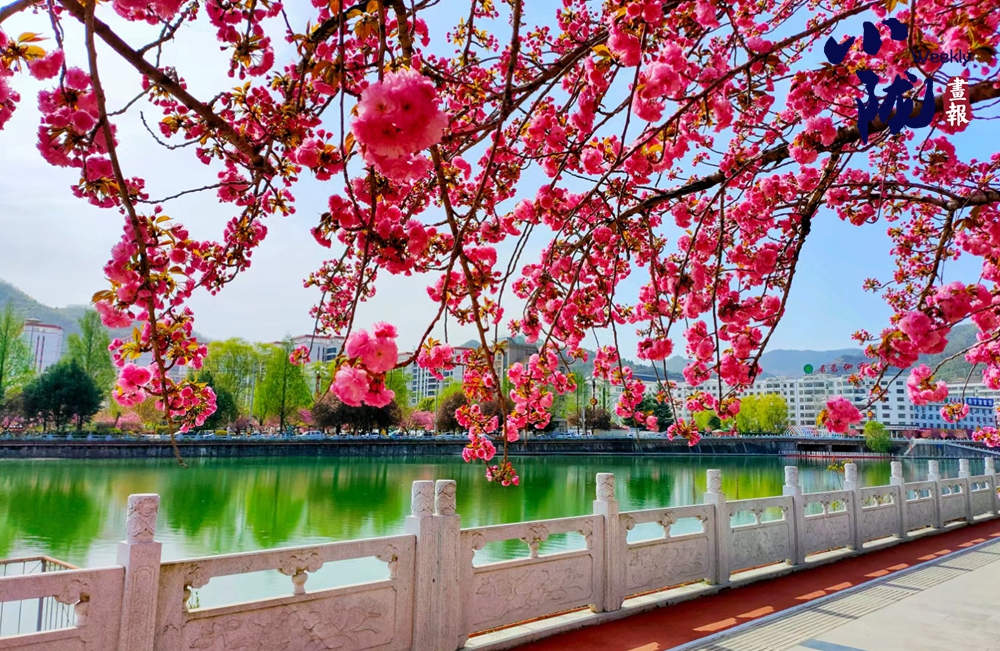 時下,隴南紅色兩當?shù)臋鸦ㄓ瓉砹怂鼈儬€漫綻放的春季??h城濱河路的櫻花樹花枝繁碩,濃密的花朵為兩當穿上粉色衣衫,倒影廣香河中,嬌艷粼粼、令人動容。