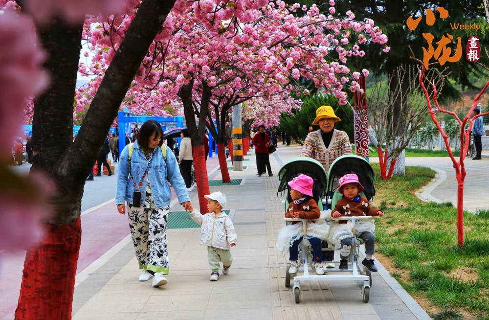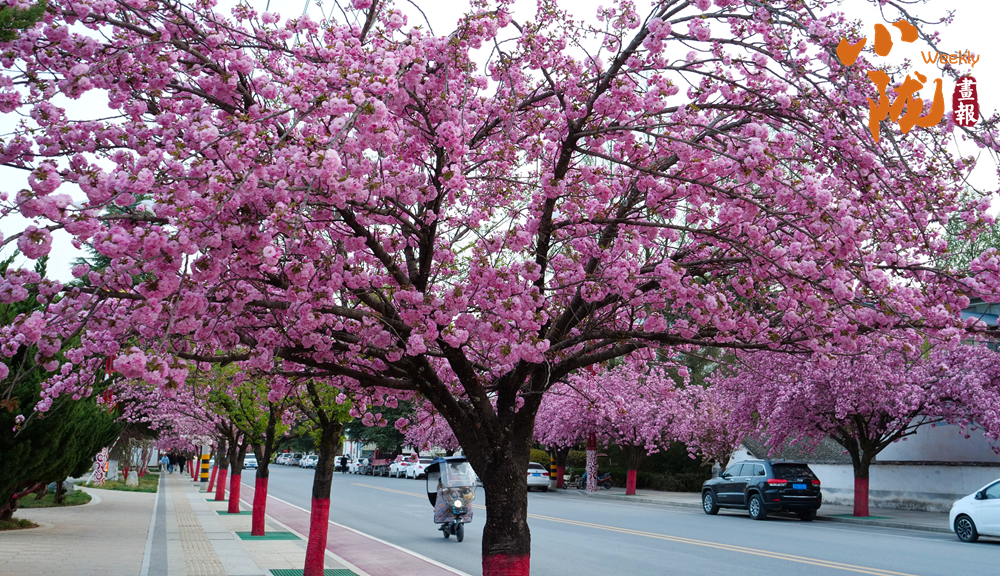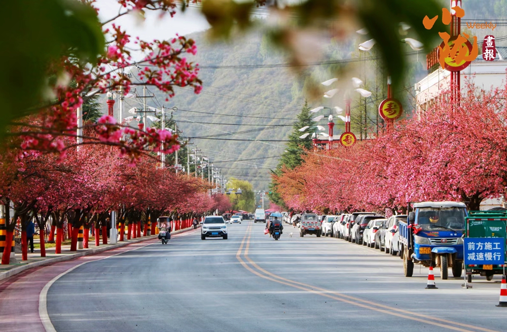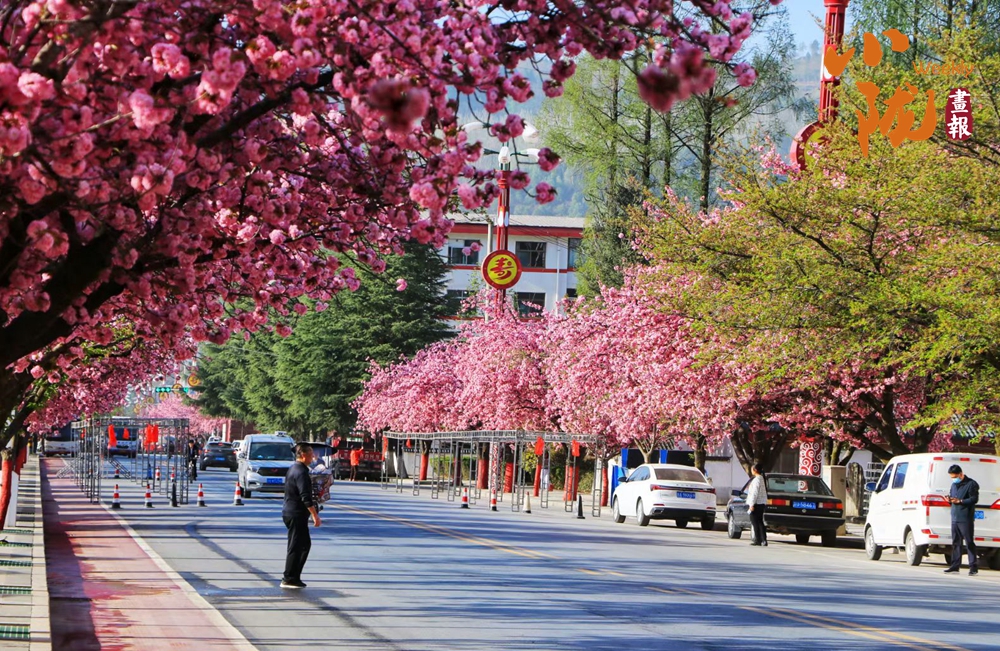 街道兩旁紅綠相映,濕潤的空氣中飄散著櫻花的淡淡芬芳,藍天澄澈如洗,青山如黛,綠水潺潺,形成“一街一景”的綠化格局,為市民打造了觸手可及的“詩與遠方”。