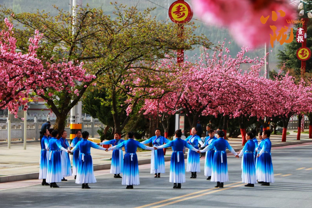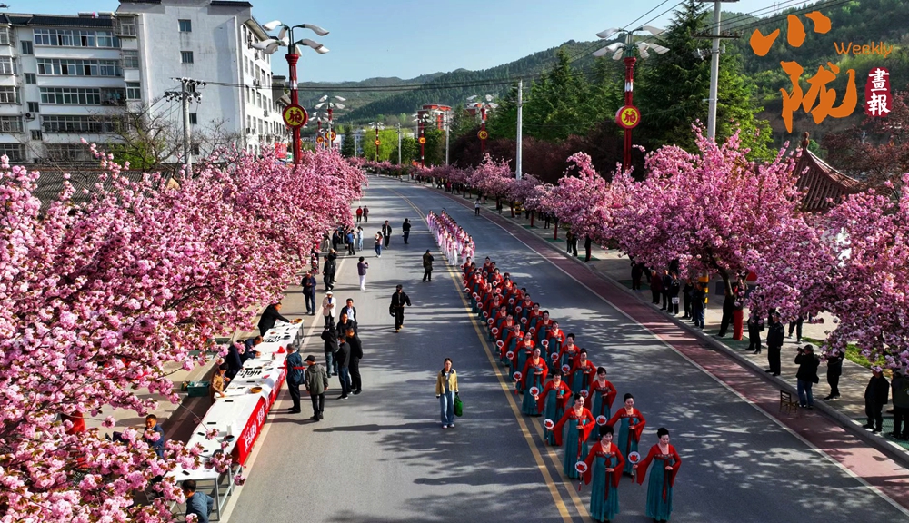 櫻花大道上,來自縣內(nèi)外的旗袍、漢服愛好者,或款步前行、或載歌載舞,古風華服與粉色的櫻花交相輝映,為這座小城增添了一份獨特的溫婉與詩意。