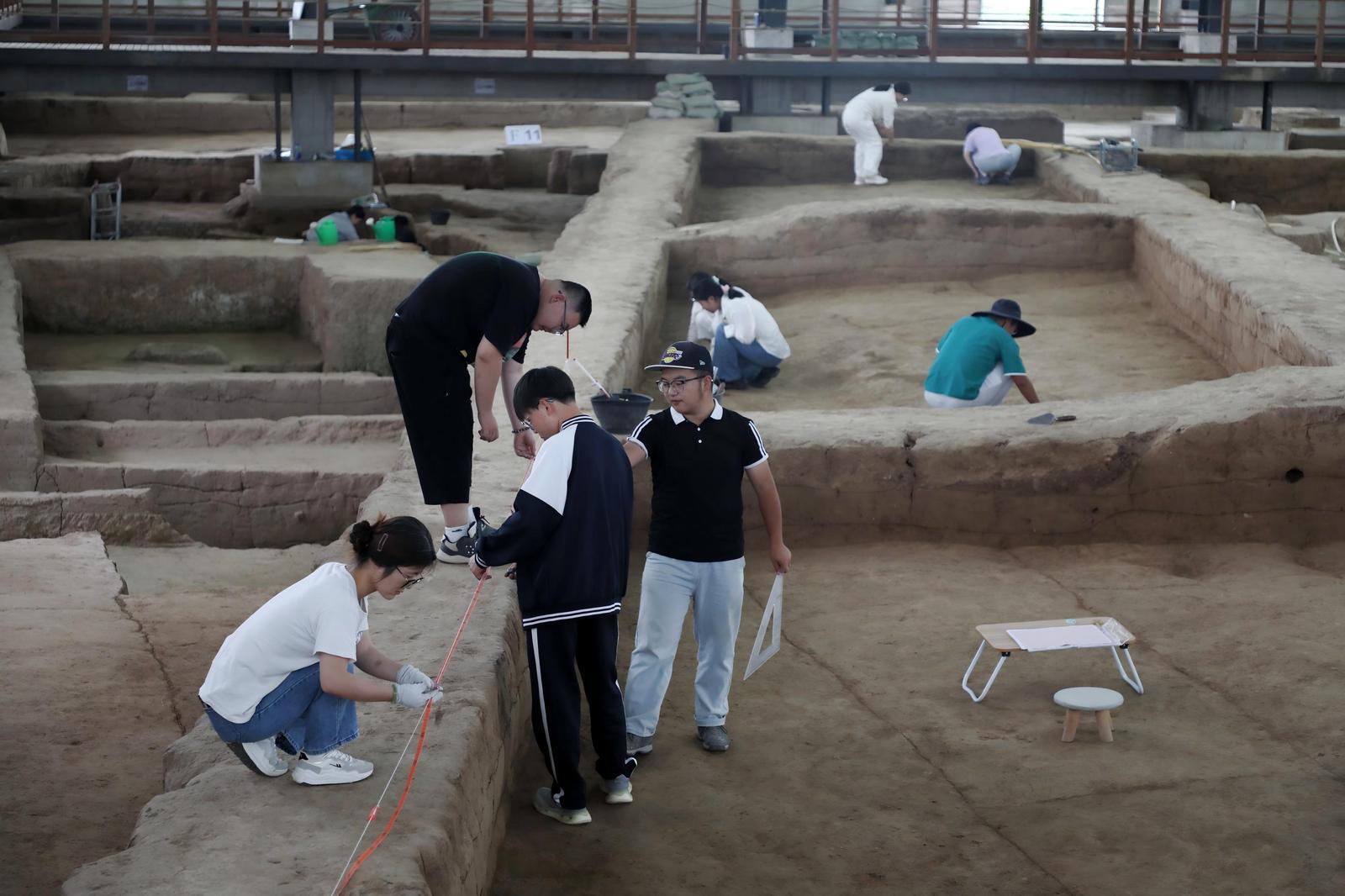 不遠(yuǎn)處,另外幾名學(xué)生也在各自負(fù)責(zé)的探方內(nèi)忙碌著,畫(huà)線、找邊、測(cè)量、繪圖,他們用手中的工具,在土層中探尋著慶陽(yáng)文明脈搏的古老印記。