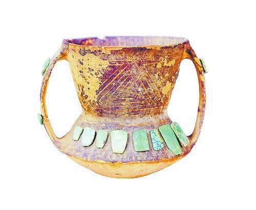 鑲綠松石回紋彩陶罐 四壩文化 甘肅省文物考古研究所藏