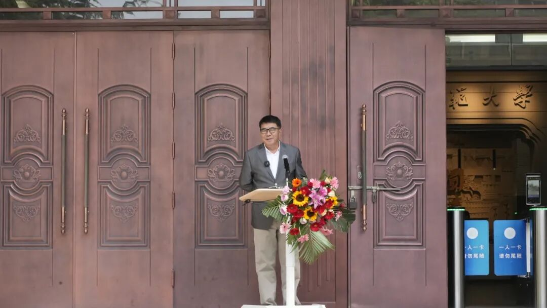 開幕式最后,徐兆壽致答謝詞。他說,做這次展覽的初衷,是因?yàn)樵谶@個(gè)數(shù)字、AI和音視頻的傳播時(shí)代,書寫可以體悟中國文化的心法。他自三十六歲起開始與孔子、老子、鳩摩羅什等圣賢結(jié)緣,五十歲以后又遇見了伏羲、大禹,正是如此多的先賢讓他有了弘道的愿望。同時(shí)特別感謝樓宇烈、莫言、賈平凹、連輯、李敬澤等眾多文化名家的支持,共同呼吁大學(xué)生抄寫經(jīng)典,傳承中華文脈。最后,他呼吁更多的人拿起毛筆或鋼筆,重新書寫,傳承經(jīng)典,弘揚(yáng)傳統(tǒng)文化。