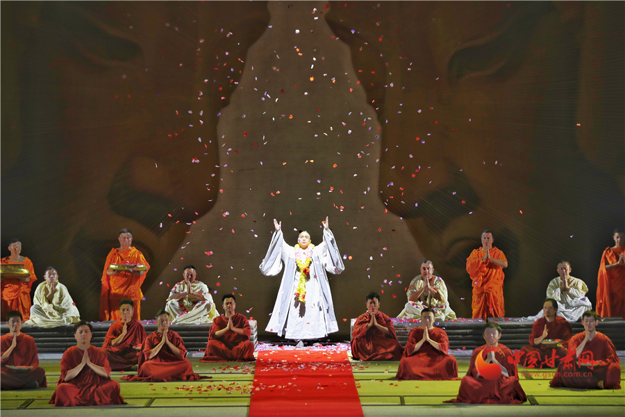 《玄奘西行》作為世界首部大型民族器樂劇,以絲綢之路文化交流使者玄奘的歷史故事為題材,集多民族樂器演奏和戲劇表演為一體,集中展示了敦煌莫高窟壁畫復原古樂器及古絲綢之路各民族傳統(tǒng)音樂的美妙旋律,體現(xiàn)了當代民族音樂的繼承與創(chuàng)新精神,是我國民族器樂舞臺藝術的高峰之作。演出結束后,中央民族樂團向甘肅省文藝院團捐贈舞美道具,并指導幫助甘肅省文藝院團實現(xiàn)《玄奘西行》的常態(tài)化駐場演出,為甘肅省再添一張靚麗的文藝名片。