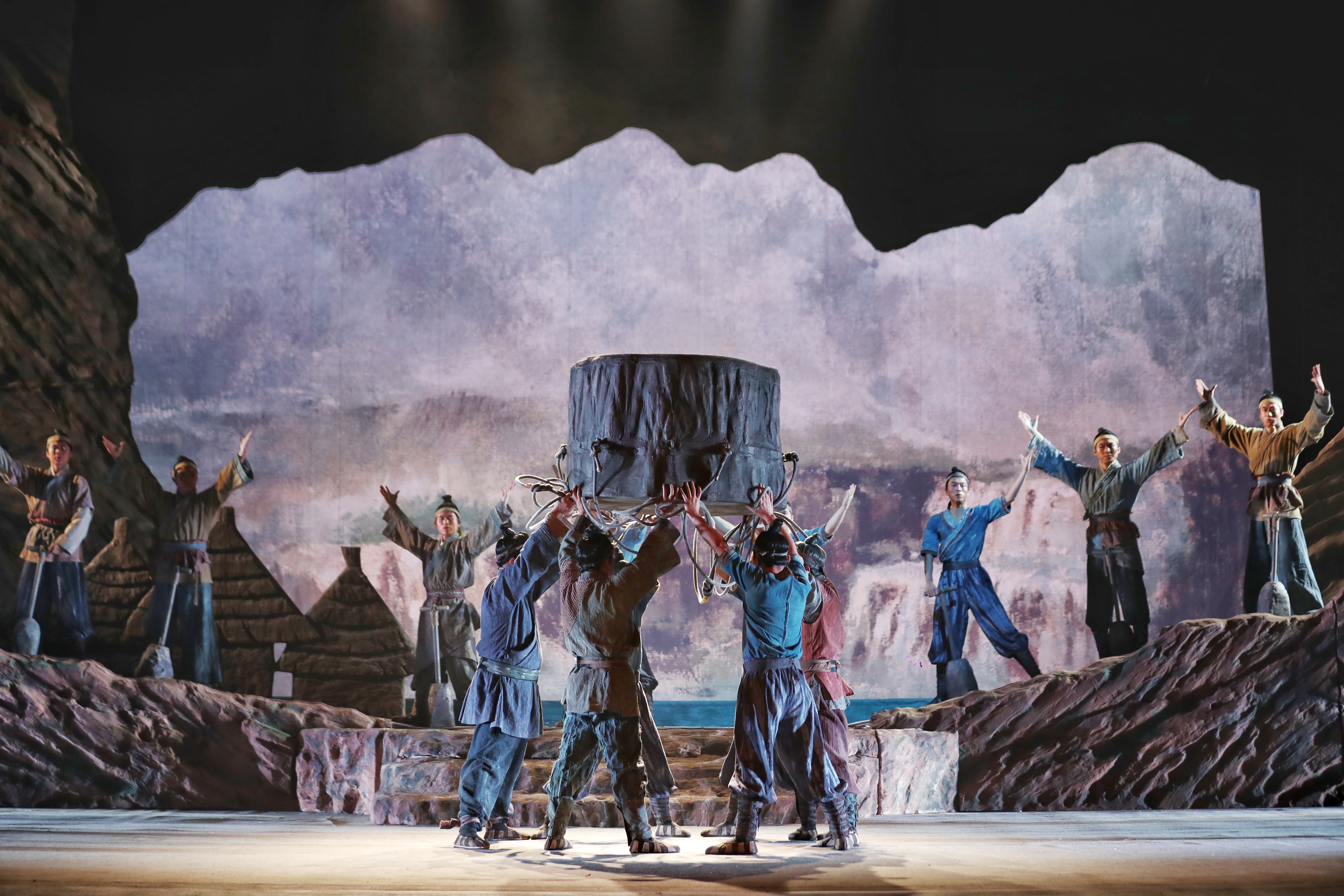 史書《尚書·禹貢》記載,大禹治水“導(dǎo)河于積石”。據(jù)考證,這里的“積石”就是甘肅省臨夏州積石山。在甘肅省文化和旅游廳全程指導(dǎo)下,甘肅省隴劇院歷時兩年精心籌備,主創(chuàng)團隊多次赴積石山縣采風(fēng),先后十六次易稿完成劇本創(chuàng)作。全體劇組人員本著“宏大的主題和民族精神高度統(tǒng)一,黃河文化和地域特色高度統(tǒng)一,呈現(xiàn)內(nèi)容和藝術(shù)樣式高度統(tǒng)一,立意挖掘和昭示未來高度統(tǒng)一”的創(chuàng)作要求,歷經(jīng)四個多月的緊張排練,將“大禹治水源頭”故事搬上舞臺。