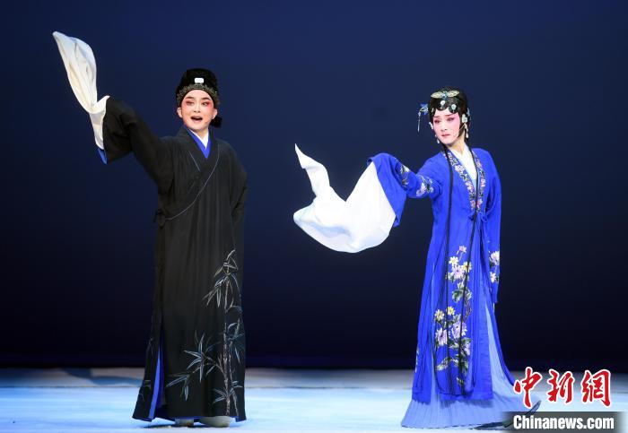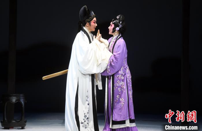 在劇中,唐琬由國(guó)家一級(jí)演員鄭全(右)飾演,陸游則由中國(guó)戲劇梅花獎(jiǎng)得主陳麗宇(左)飾演?!∮浾邉⒖筛?nbsp;攝