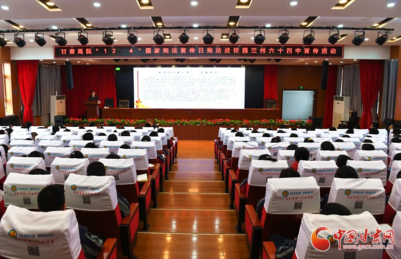 中國(guó)甘肅網(wǎng)12月4日訊(本網(wǎng)記者 李紅軍)12月4日是第七個(gè)“國(guó)家憲法日”。今天下午,甘肅省法院少年法庭的法官走進(jìn)蘭州市第六十四中學(xué),開展以“深入學(xué)習(xí)宣傳習(xí)近平法治思想、大力弘揚(yáng)憲法精神”為主題的憲法進(jìn)校園宣傳活動(dòng)。該校300余名師生代表在學(xué)術(shù)報(bào)告廳聆聽(tīng)了宣講報(bào)告,兩名基層法院人民陪審員應(yīng)邀參加了活動(dòng)。
