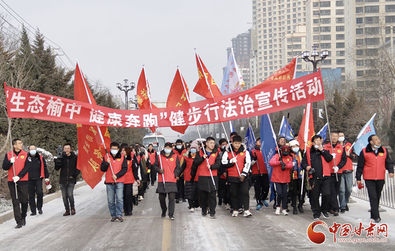 省、市、縣司法行政工作人員、法律服務(wù)工作者、甘肅司法健行者俱樂(lè)部隊(duì)員等200余人著法制工作服、宣傳標(biāo)志服,持法治宣傳牌按規(guī)定路線在榆中縣城內(nèi)徒步行走5公里,首次將健步行活動(dòng)和國(guó)家憲法日宣傳相結(jié)合,讓廣大群眾在鍛煉的同時(shí),還可在沿途學(xué)習(xí)憲法及法律知識(shí),進(jìn)一步提高了普法宣傳的知曉度和覆蓋面。
