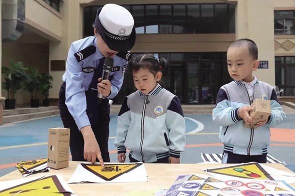 進學(xué)校,強化交通安全意識。宣傳民警采用與小朋友一起做游戲的方式,融入相關(guān)的交通安全知識,讓小朋友們知道日常生活中行走、過馬路、乘車時如何注意安全。并通過提問、搶答、發(fā)獎品的方式調(diào)動小朋友的積極性,認識更多交通標識標牌,記牢出行安全常識。