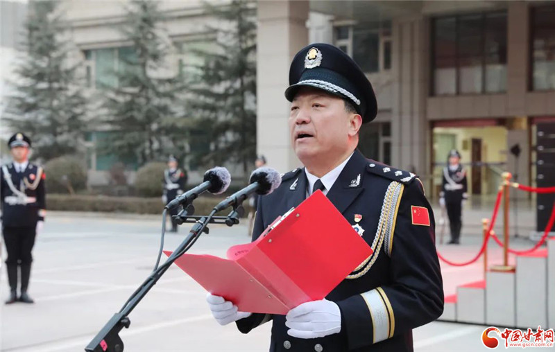 中國甘肅網1月10日訊(本網記者 程?。?月10日,蘭州市公安局舉行升警旗儀式,熱烈慶祝第三個中國人民警察節(jié),進一步激勵全警深入學習宣傳貫徹黨的二十大精神,牢記初心使命、堅定從警信念,匯聚向高而攀、向新而生、向遠而行的磅礴力量,推動新時代蘭州公安高質量發(fā)展,為全面建設社會主義現(xiàn)代化國家、全面推進中華民族偉大復興保駕護航。省公安廳副廳長、蘭州市副市長、市公安局黨委書記、局長王立朝出席并講話。