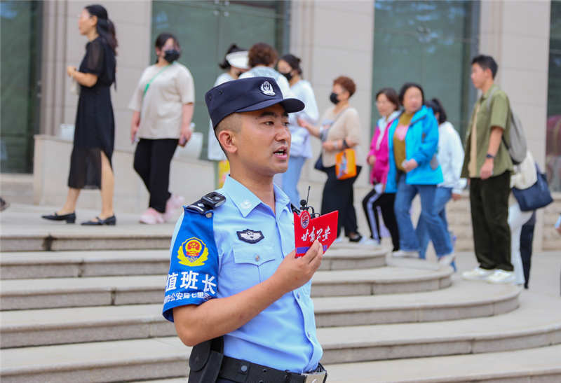 “我們在博物館內部開展游客分流、提醒引導、巡邏防控、排查安全隱患等工作,全力為游客打造隱患少、服務好的平安游覽環(huán)境。同時,我們的交警同事也在周邊道路積極開展道路交通疏導,根據(jù)車流量情況在不同路段進行分流,保障游客車輛安全有序通行。”西站派出所副所長魏相昆說,“甘肅省博物館周邊停車緊張,提醒游客盡量乘坐公共交通工具,如遇突發(fā)情況請及時和我們執(zhí)勤民警聯(lián)系,我們會全力提供幫助。”