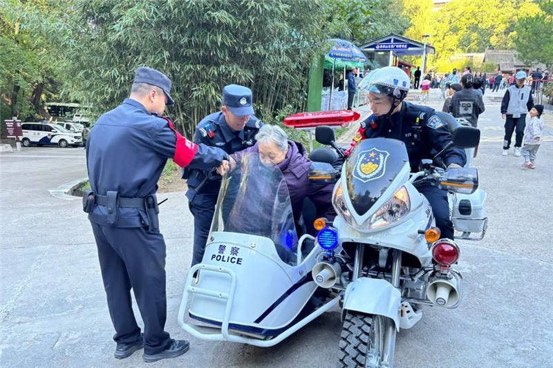 10月2日,一名陜西渭南游客向麥積山大景區(qū)派出所求助說,其母親由于年紀(jì)較大,已經(jīng)走不動了,需下山前往酒店休息,希望民警幫忙聯(lián)系車輛。隨后,旅游警察用警用摩托車送老人下山,安全到達(dá)山下停車場。