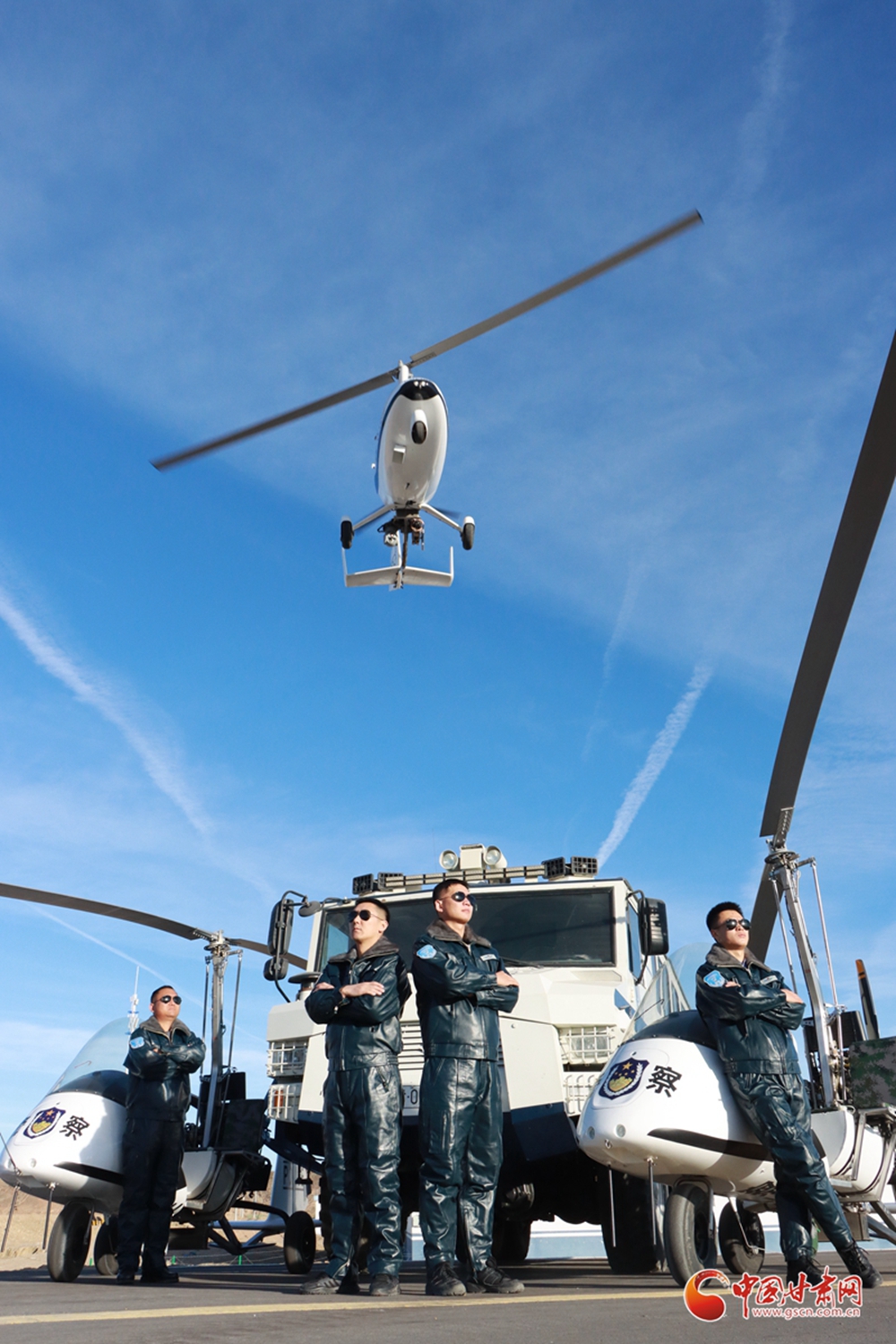 甘肅出入境邊防檢查總站酒泉邊境管理支隊利用旋翼機在馬鬃山邊境管理區(qū)戈壁荒漠地區(qū)開展空中巡防任務。該隊的成立成為甘肅出入境邊防檢查總站“科技興警、科技管邊”的一張亮麗名片,標志著“智慧邊境、數(shù)字邊境”平安邊境體系的初步形成。“飛天警隊”是全國移民管理系統(tǒng)首支旋翼機隊成立于2020年7月,由9名民警組成,平均年齡不超過30歲。