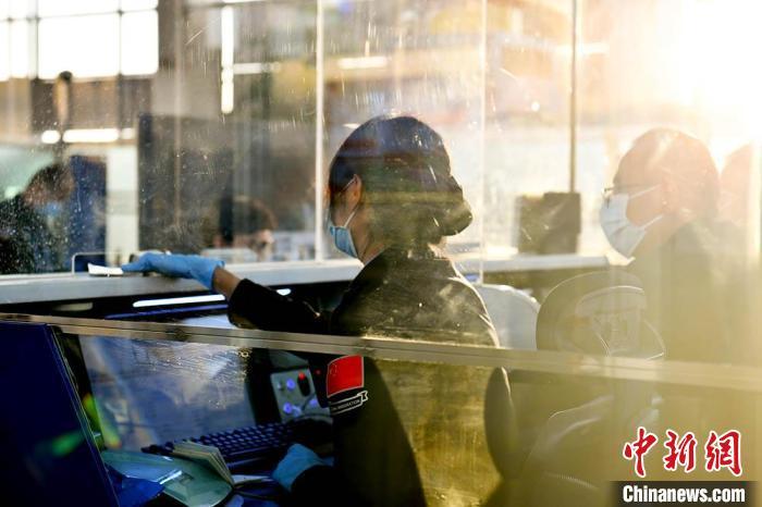 2024年11月7日,蘭州邊檢站執(zhí)勤民警驗(yàn)放國(guó)際航班旅客。王翔宇 攝