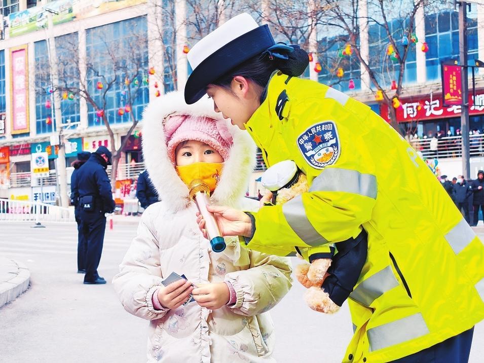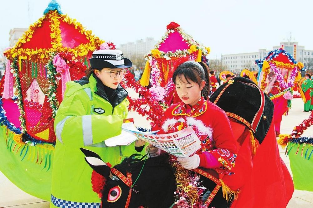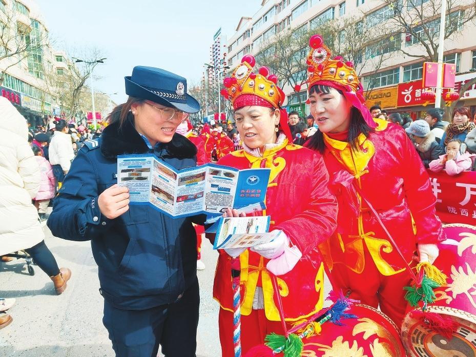 2月11日,合水縣公安民警巧借民俗活動群眾聚集的有利時(shí)機(jī)開展交通安全宣傳活動。新甘肅·甘肅法治報(bào)通訊員李曉攝