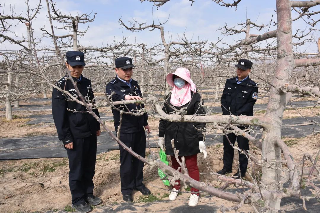 在這片希望的田野上,一抹抹藏藍色的身影穿梭于果園中,格外引人注目。“老武,今年果樹長勢不錯啊!不過最近天氣干燥,可得注意防火,別在地頭抽煙了!”民警張?zhí)锝芤贿呇策?,一邊笑著提醒正在修剪果樹的果農(nóng)武大叔。“放心吧,張警官,你們天天來巡邏,我們心里踏實多了!”武大叔擦了擦額頭的汗,連連點頭道。