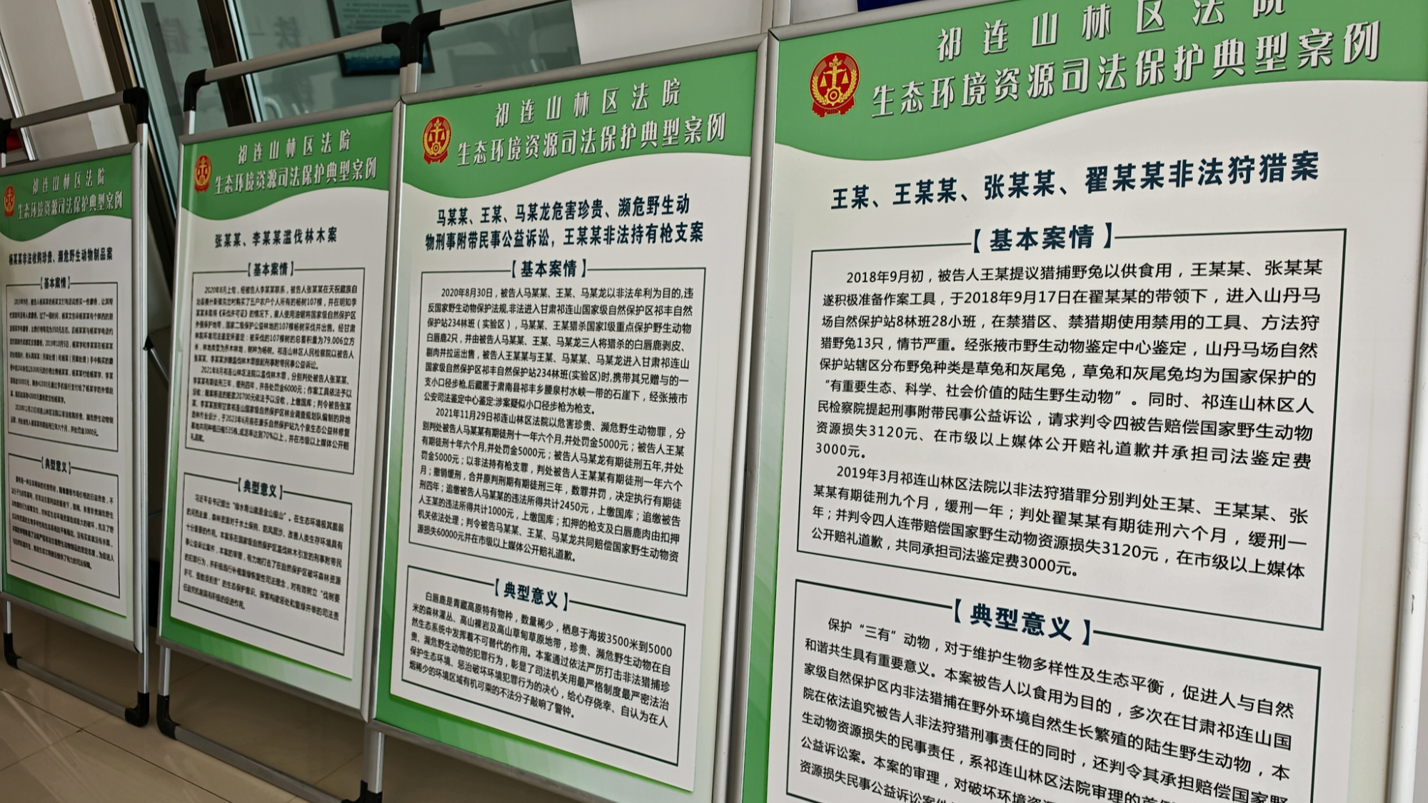 巡回審判庭的“法庭”從不在屋里。有時(shí)在油菜花田邊支起桌案,法槌一落,“王某前森林草原失火案”的庭審就成了最鮮活的普法課——這案子入選最高人民法院青藏高原生態(tài)保護(hù)典型案例,法官蹲在牧人身邊,指著草原防火設(shè)備說(shuō)“咋用”,掰著指頭算“失火要擔(dān)啥責(zé)”,牧民們握著趕牧鞭聽(tīng)得入神,連羊群都靜悄悄地伏在遠(yuǎn)處。辦案點(diǎn)的展板上,非法采礦、危害珍貴野生動(dòng)物等10個(gè)典型案例圖文并置,像10面透亮的鏡子,照得生態(tài)保護(hù)的法律紅線清清楚楚。