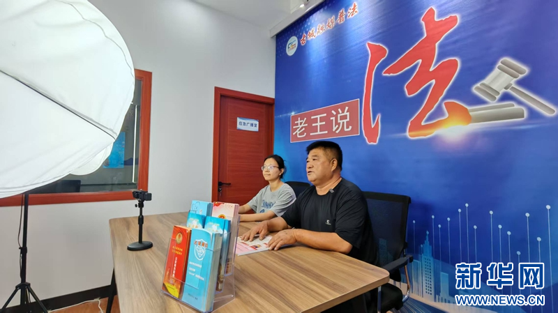 “自從我們直播以后,我發(fā)現(xiàn)走在路上,超載、不戴頭盔等交通違規(guī)違法現(xiàn)象少了很多。”“對,尤其是現(xiàn)在村民很少用三輪車接送學生,大家也都在車上貼了反光條。”在酒泉市金塔縣古城鄉(xiāng)黨群服務中心,一場帶著濃濃鄉(xiāng)音的普法直播正在進行。這個名為“老王說法”的直播間,主播正是當?shù)氐娜嗣裾{解員王世軍和他的徒弟陳婷婷。