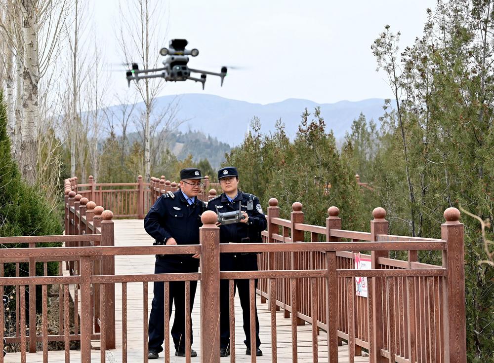伴隨著螺旋槳的嗡鳴聲,無人機(jī)高清鏡頭越過山脊,將進(jìn)山道路、隱蔽角落畫面逐一定格、回傳……大砂溝派出所無人機(jī)操作員陳雪雯一邊切換畫面一邊介紹:“現(xiàn)在,無人機(jī)20分鐘就能覆蓋巡查一個(gè)山頭,哪些地方枯枝堆比較多,哪條小路有人靠近,全都看得一清二楚。”