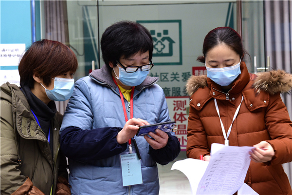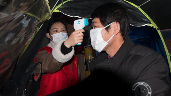 自疫情防控工作開(kāi)展以來(lái),湖北省咸寧市咸安區(qū)紀(jì)委監(jiān)委90后干部黃煬,始終堅(jiān)守防疫一線,參與卡點(diǎn)值守、入戶摸排、生活物資代購(gòu)等工作,耐心安撫居民情緒,為他們進(jìn)行心理疏導(dǎo)。圖為黃煬為夜歸的居民測(cè)量體溫。(湖北省咸寧市咸安區(qū)紀(jì)委監(jiān)委 魯一凡 攝)