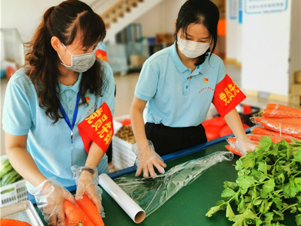 海南省保亭縣紀(jì)委監(jiān)委第一黨支部組織黨員先鋒隊(duì)下沉一線,保障疫情期間群眾的蔬菜供應(yīng)。(海南省保亭縣紀(jì)委監(jiān)委 王秋婷 攝)