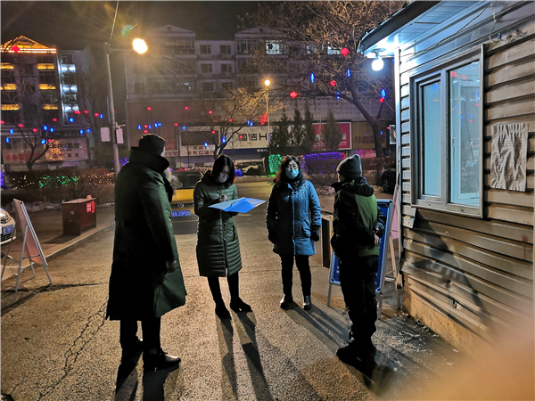 疫情防控期間,吉林省集安市紀(jì)委監(jiān)委和巡察辦女同志組成聯(lián)合督查組,夜間深入小區(qū)防控監(jiān)測(cè)點(diǎn),對(duì)值班值守、網(wǎng)格化管理等情況開(kāi)展督導(dǎo),確保社區(qū)防控責(zé)任落實(shí)落細(xì)。(吉林省集安市紀(jì)委監(jiān)委 李承育 攝)